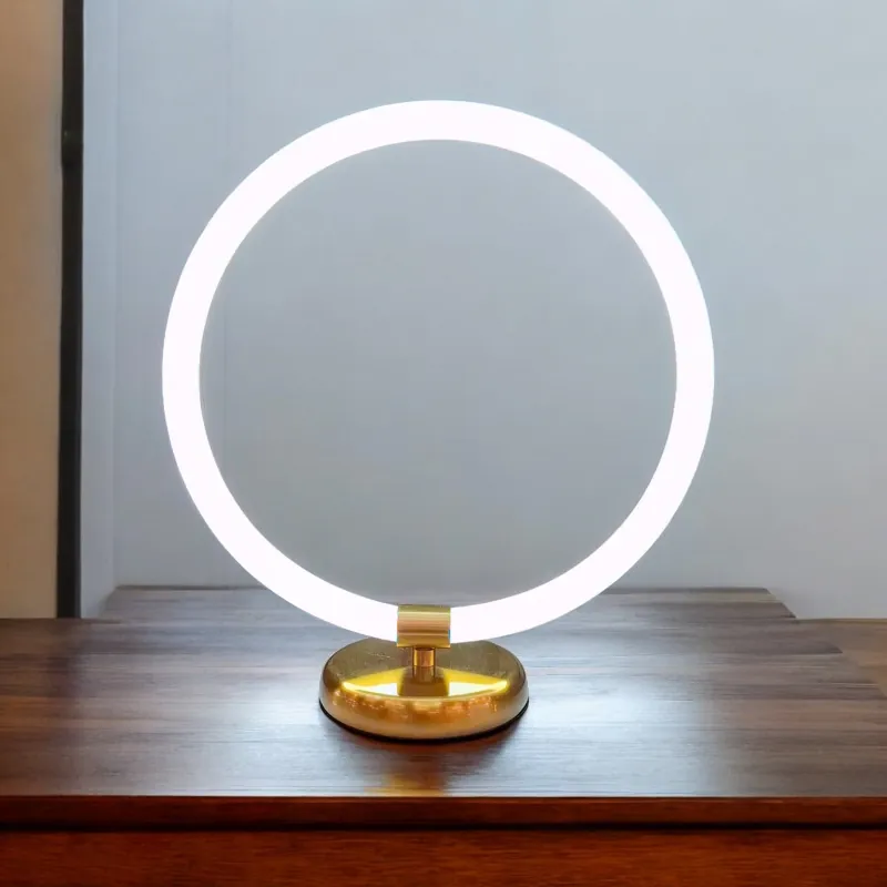 أباجورة ليد دائرية اﻟﺸﻜﻞ ﻣﺼﻨﻮعة ﻣﻦ المعدن، توﻓﺮ إﺿﺎءة داﻓﺌﺔ ورﻗﯿﻘﺔ، ﺗﺼﻤﯿﻢ ﻋﺼﺮي وأﻧﯿﻖ، ﻣﺜﺎﻟية ﻟﻐﺮف اﻟﻨﻮم وﻏﺮف اﻟﻤﻌﯿﺸﺔ واﻟﻤﻜﺎﺗﺐ.