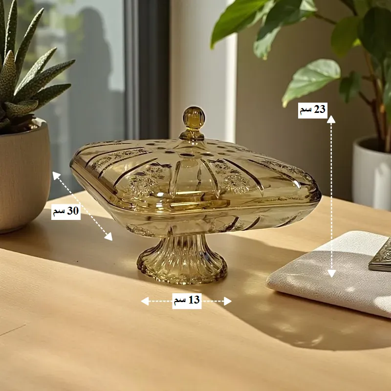 - يأتي الطبق بأبعاد مثالية للتقديم، حيث يبلغ ارتفاعه الكلي 23 سم وطول الضلع 30 سم، مع قاعدة متينة بقطر 13 سم لتوفير أقصى درجات الثبات.