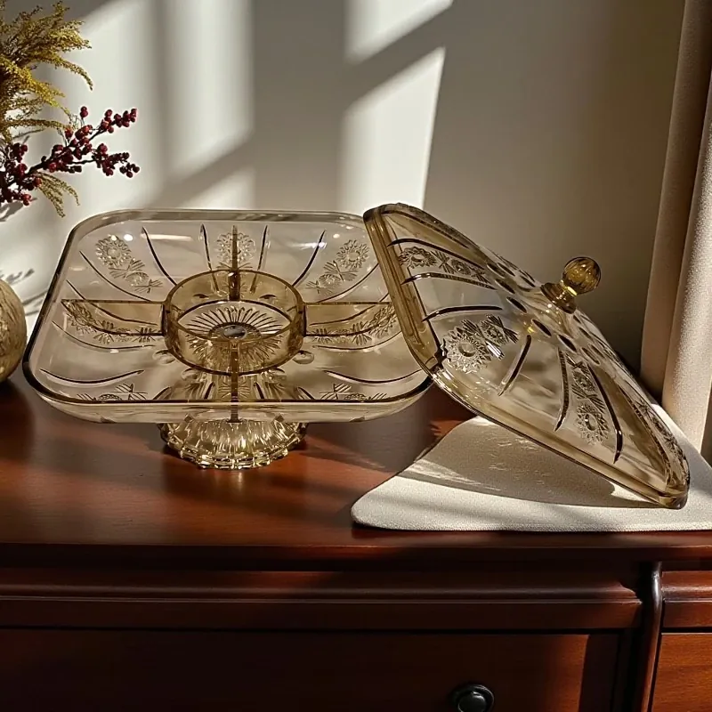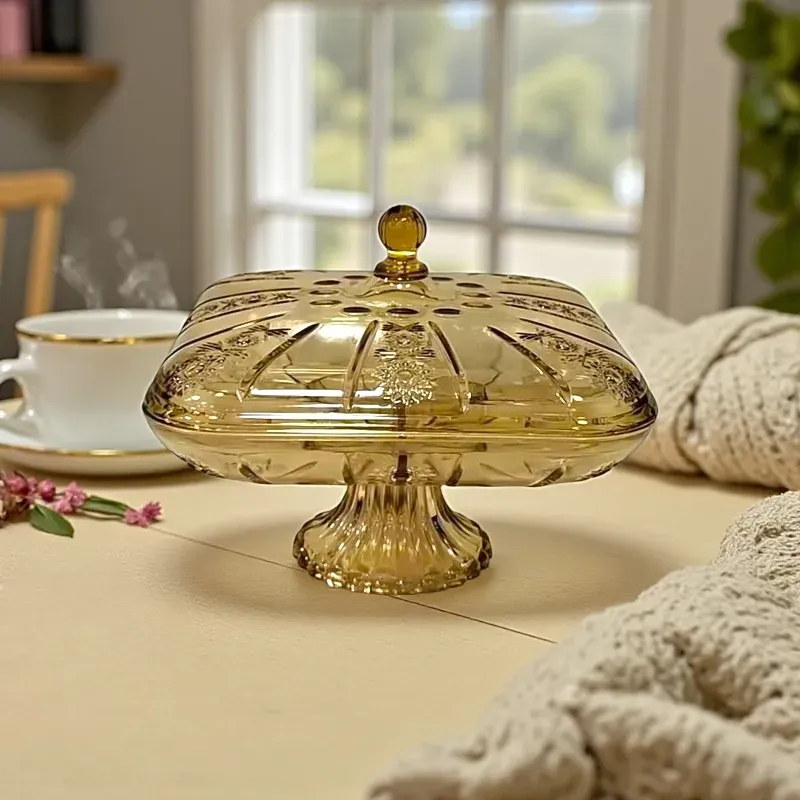 - هذا الطبق الأنيق بتصميمه المربع العسلي الشفاف يجمع بين الجمال الكلاسيكي والوظيفة العملية، ليكون قطعة مميزة في منزلك.