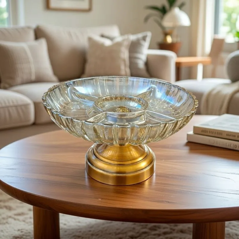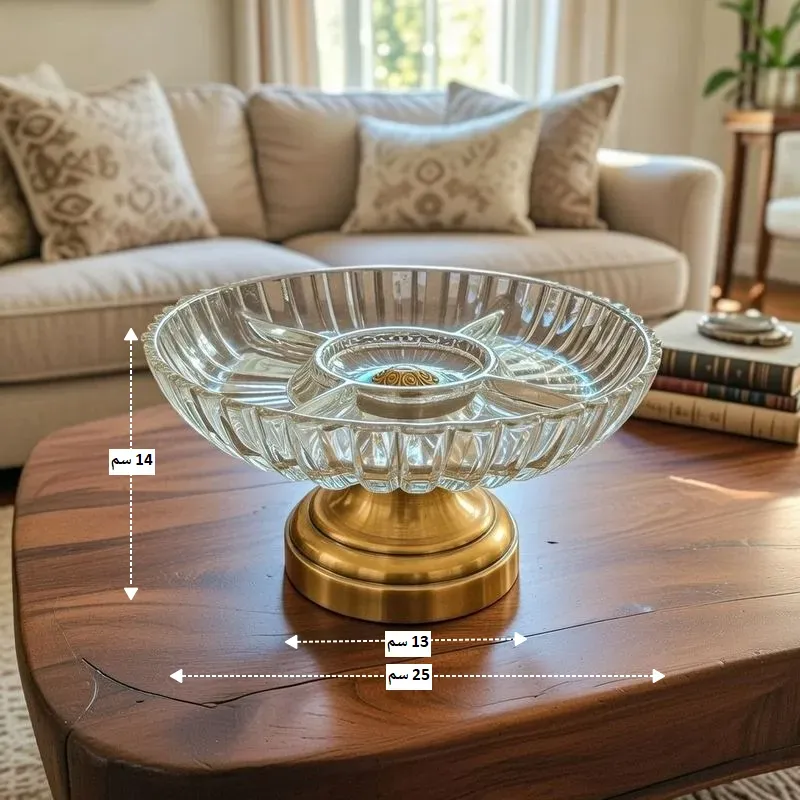 - يتيح لك تقديم أربعة أنواع مختلفة من المكسرات أو الحلويات في طبق واحد بفضل الفواصل الكريستالية الداخلية المدمجة التي تمنع اختلاط الأصناف.