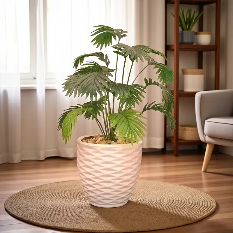 - مصنوعة من مواد عالية الجودة تحاكي ملمس وشكل الأغصان والأوراق الطبيعية بدقة فائقة، وتخرج مباشرة من الوعاء.