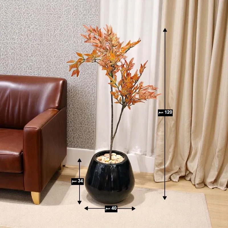 - شجرة ناندينا دومستيكا اصطناعية، تتميز بأوراقها الرمحية الأنيقة ذات التدرجات اللونية الدافئة بين الأحمر والبرتقالي، مما يمنحها مظهراً طبيعياً وحيوياً يدوم طوال العام دون عناء العناية بالنباتات الطبيعية.