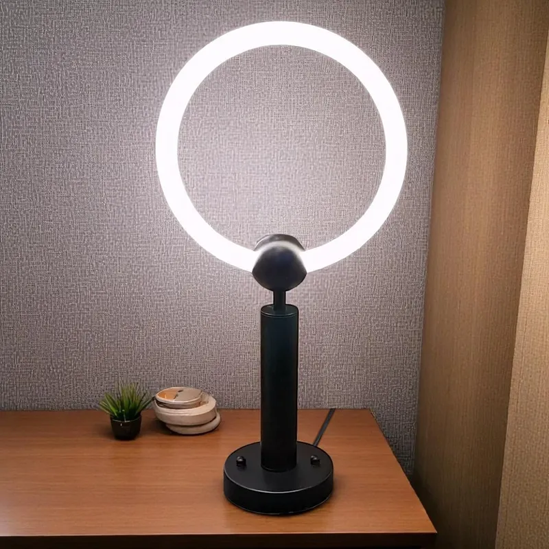 - أباجورة ليد بتصميم عصري ومبتكر، تتميز بشكلها الدائري المضيء الذي يبعث إضاءة ساطعة ومتجانسة.